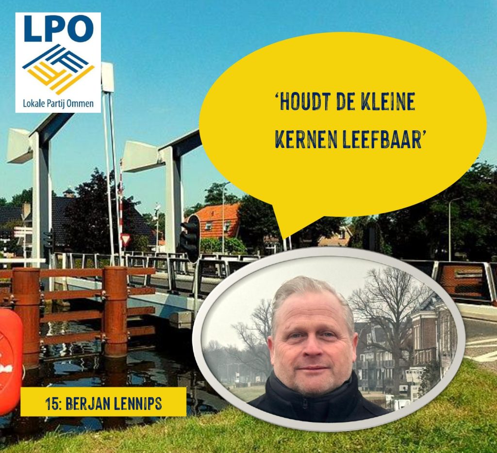 Trots zijn wij op Berjan Lennips, onze uitblinker in Beerzerveld, dat hij weer op de lijst wil staan van de LPO. Net als bij ons staat bij hem stabiliteit voorop. Fanatiek voetballer bij Voetbal Vereniging Mariënberg. Eigenaar bij L&B Schildersbedrijf B.V. Voor hem staat Beerzerveld op nummer 1. Hij zet zich daar voor in en vindt de kleine kernen heel belangrijk.